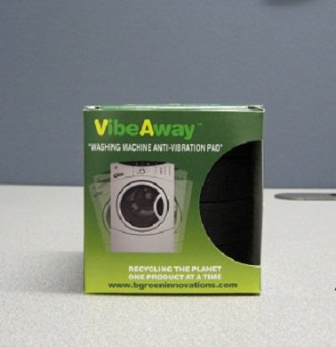 Made from 100% recycled tire rubber, address important environmental concerns.Recessed for easy guidance for foot of washing machine/dryer.Protect floors.Prevents washing machines from " walking".Reduces the transfer of vibration. VibeAwayTM pads are specially designed washing machine anti-vibration pads for washing machines and dryers. The 100% crumb rubber pad, made from recycled tires, is designed to reduce the transfer of vibration that occurs in most typical washing and drying cycles. It is a shock absorption pad that is used to reduce sound, vibrations, and pulsating of washing machines, dryers, table saws, freezers and other large appliances. Our VibeAwayTM pads prevent washing machines from "walking," and help prolong the life of your washing machine, dryer or other appliance. They also reduce the need to reinforce upper level floors to reduce vibration and noise. The pads have a full refund guarantee. VibeAwayTM pads, made from 100% recycled tire rubber, address important environmental concerns and problems facing the planet today. More about this